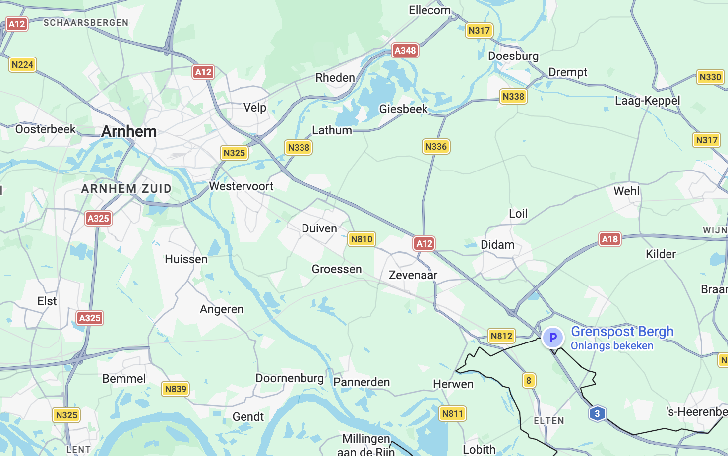 A12 vlak voor de grens bij Duitsland. Dagelijks rijden er meer dan 35.000 mensen voorbij deze borden. En tijdens de vakantieperiode het dubbele....